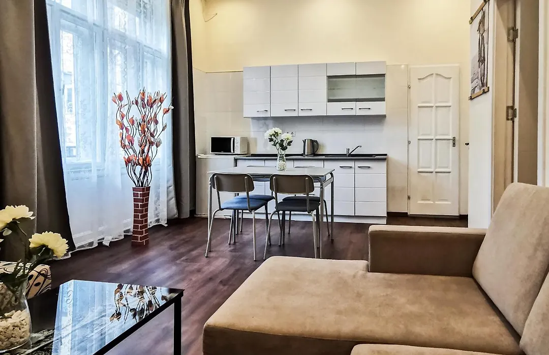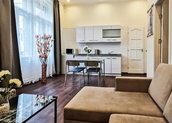 1-pokojowy apartament oferuje możliwość zwiedzania takich miejsc jak Dunaj w odległości 25 min pieszo od obiektu, oraz Węgierskie Muzeum Narodowe - w malej odległości od obiektu. Apartament o powierzchni 80 m² jest położony w pobliżu Uniwersytet im. Loránda Eötvösa w Budapeszcie, maksymalnie 5 min pieszo od stacji metra Fovam Square. Park miejski leży w 3 km.